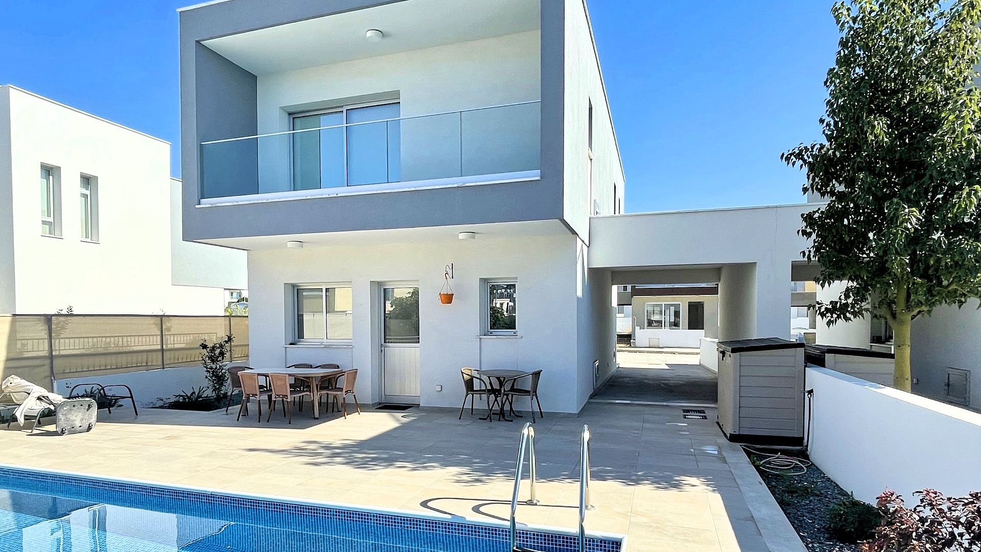 Nowoczesna willa, basen, klimatyzacja indywidualna, wyposażona kuchnia, duży salon, 2 tarasy wypoczynkowe.